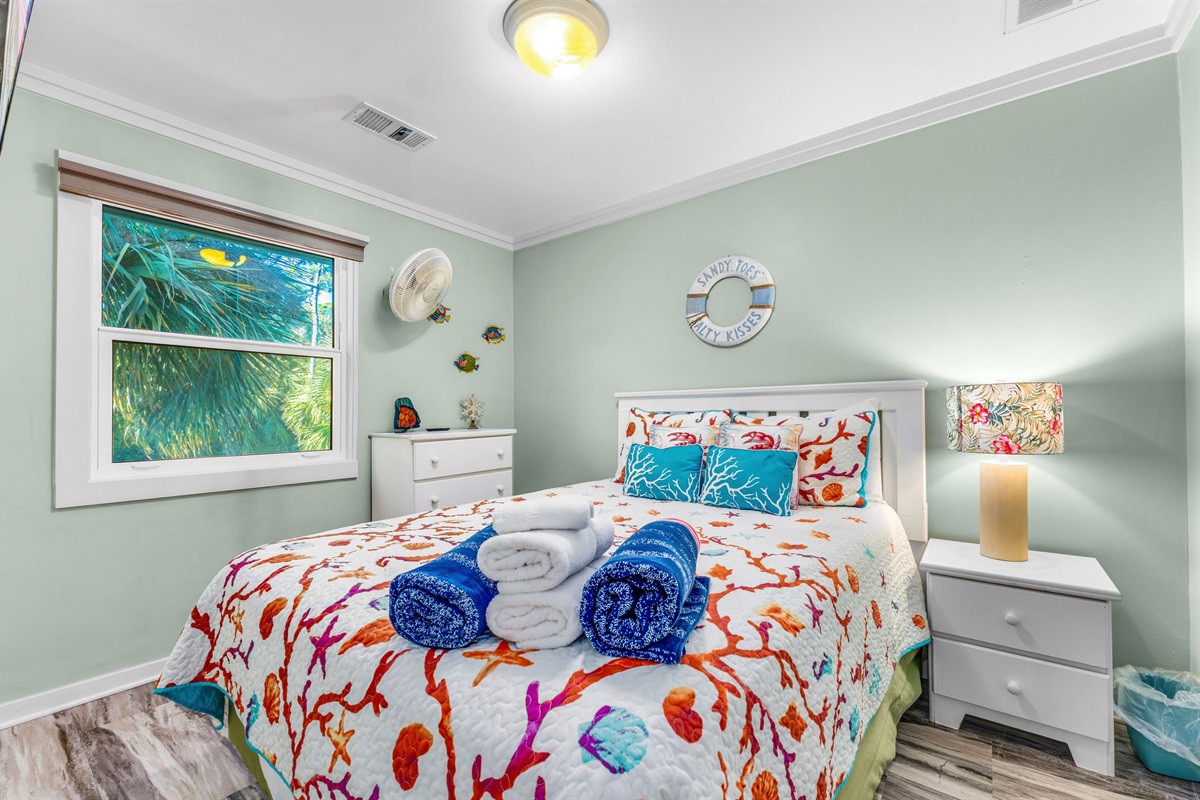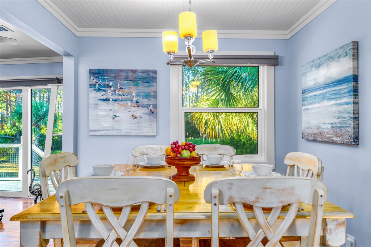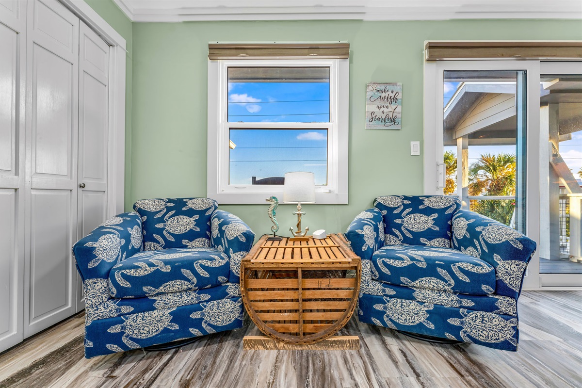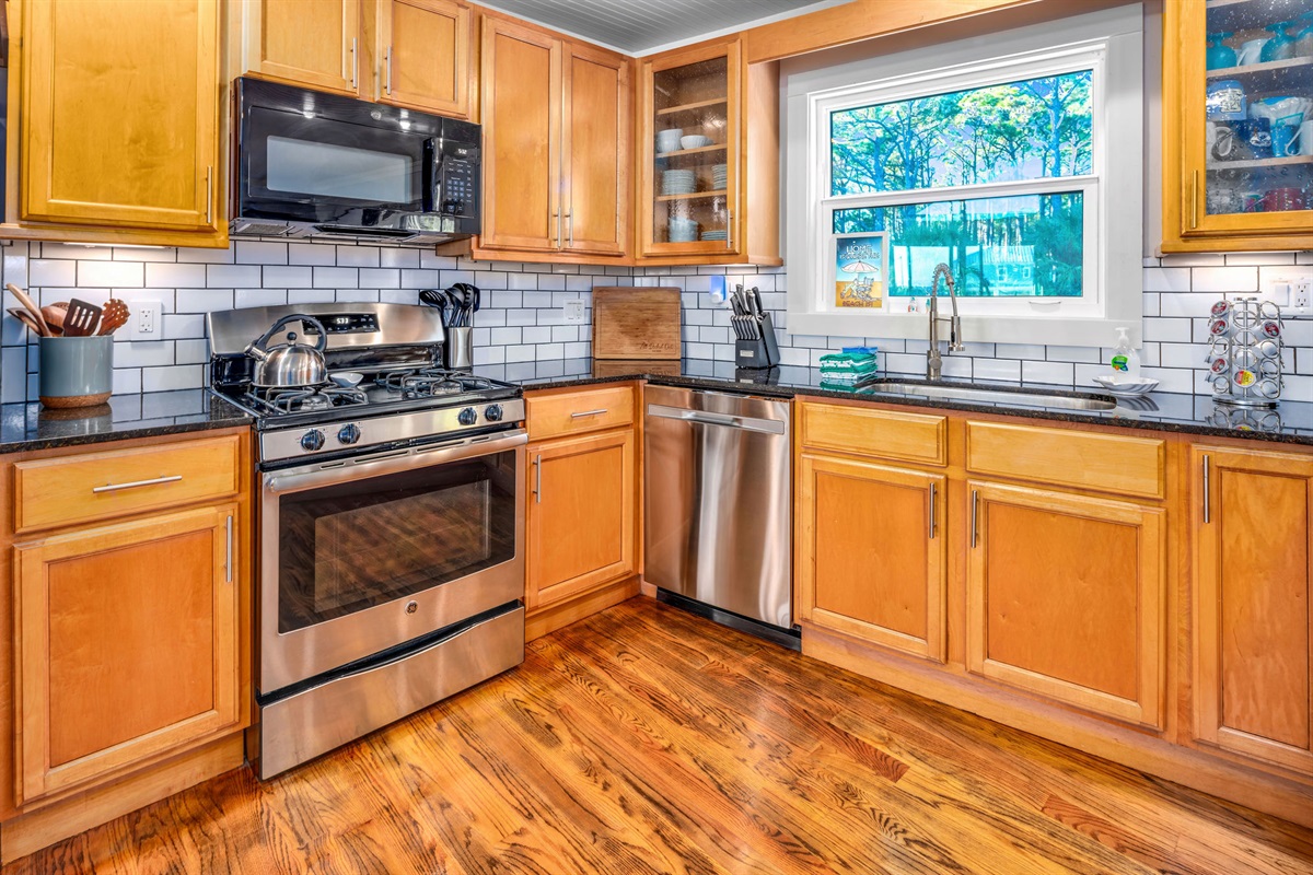 There's lots of comfortable seating at mealtimes, and the well-appointed kitchen with gas stove, granite counters, and stainless steel appliances provides all you need to prepare delicious coastal meals. A gas grill is provided just off the kitchen to dazzle everyone with your fisherman's catch! A convenient wet bar boasts a wine cooler, sink, and counter space for preparing your beverages.