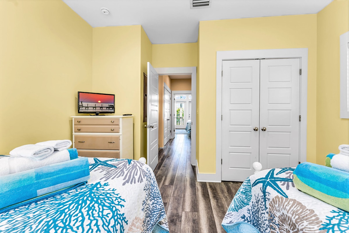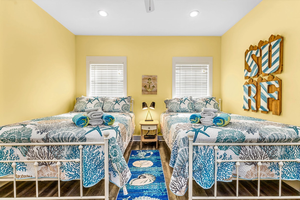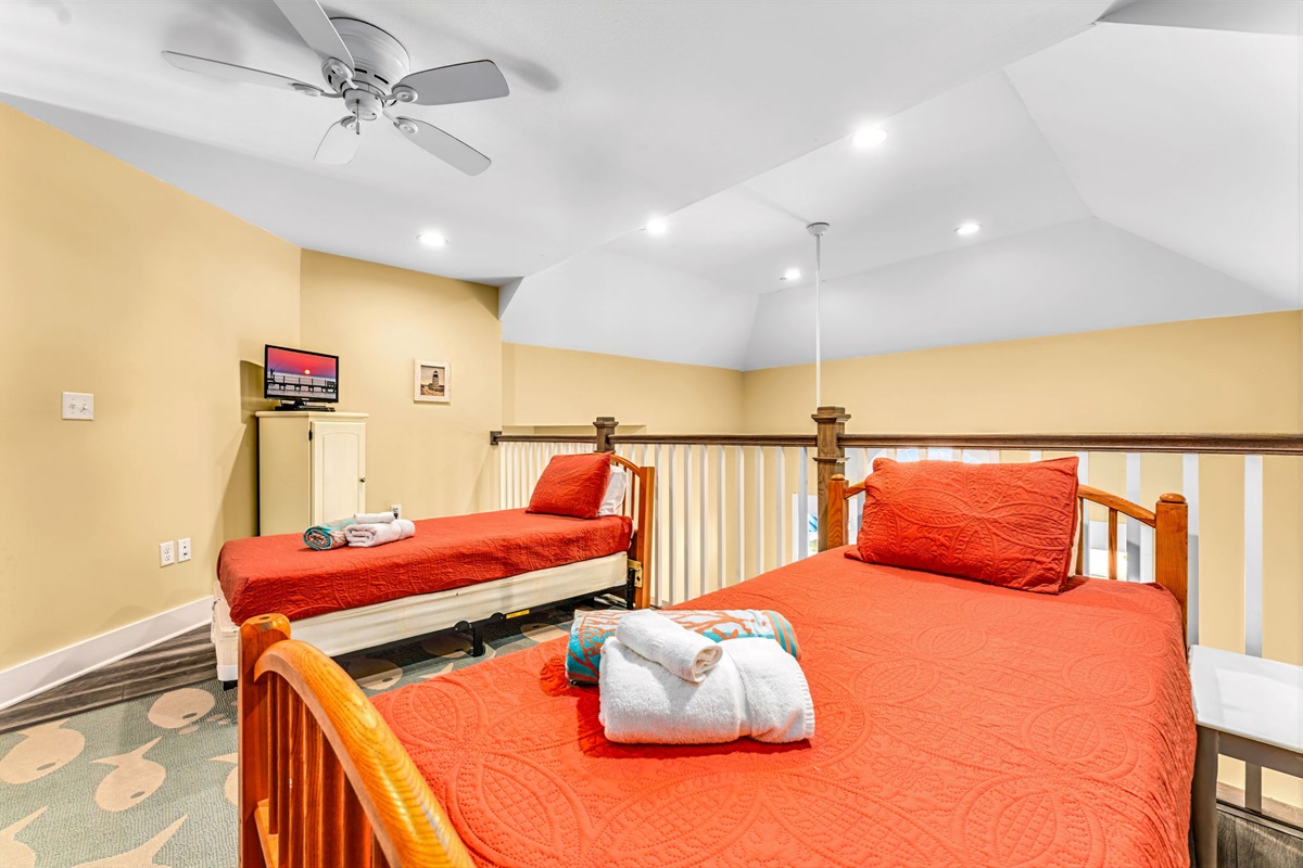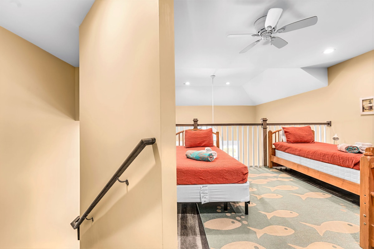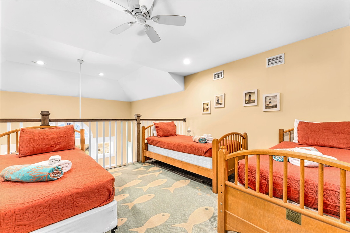 A 4th loft bedroom is upstairs with 3 twin beds and views of the bay.