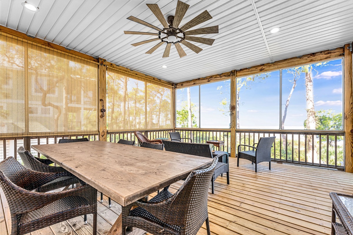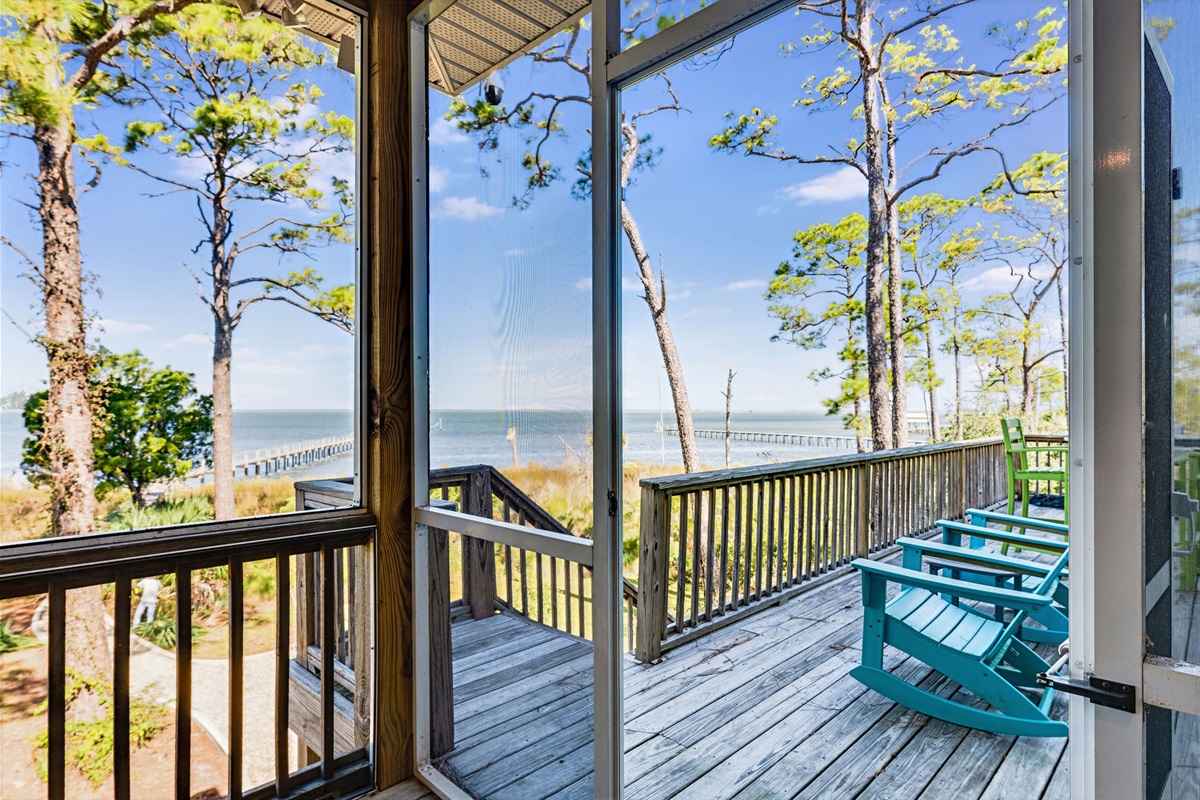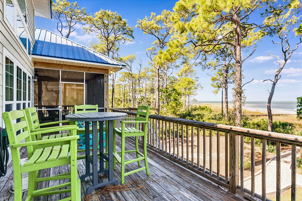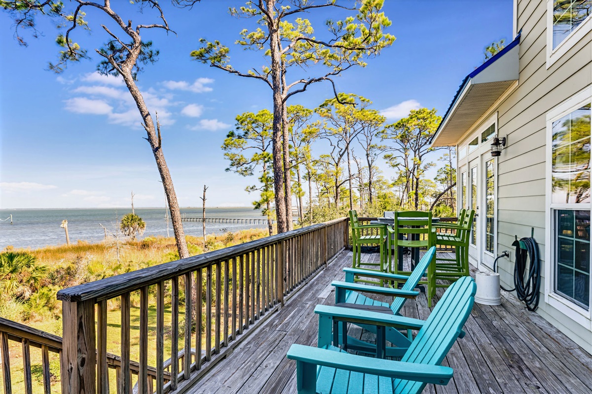 4 Bedrooms • 3 Bathrooms (2 full, 1 half) 3 Baths (2 full, 1 half) • Sleeps 1-11Come prepared for relaxation in this spacious bayfront Dock Holiday on the East End of St. George Island, just outside the Julian G Bruce State Park! Gorgeous views of the Apalachicola Bay and St. George Sound from almost every room invite you to let your cares go in this 3 bedroom plus a 4th loft bedroom, 2 bath home. The large, well furnished, screened porch is perfect for enjoying fresh morning coffee or an evening iced beverage, a good book, family games, or catching up with old friends. An open deck provides sun and a splash of vitamin D.