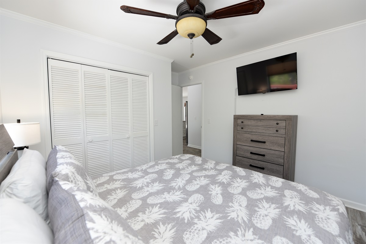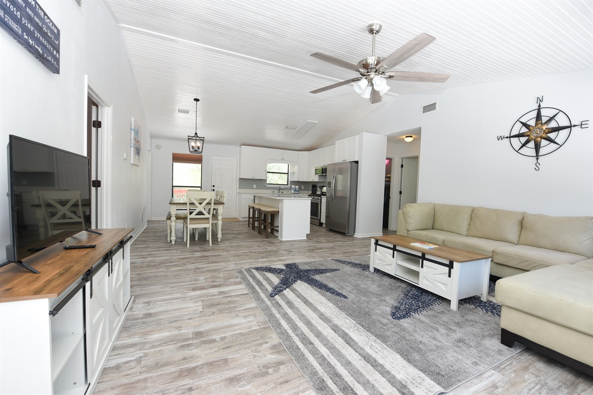 3 Bedrooms • 2 Bathrooms 2 Baths • Sleeps 1-8Welcome to Drop Anchor! Located canal-front with a short walk or bike ride to the beautiful Gulf beaches. Drop Anchor has a very relaxed vibe with fishing in mind. The open living area with natural light with canal views, section sofa, smart TV, dining table for 6 with additional seating for 3 at the center island. The beautiful updated kitchen boasts granite counter tops, all new stainless appliances and a separate pantry off the dining area. The master suite features a King size bed with a large walk in closet and private bathroom with a tub/shower combo. Just past the living area the two guest bedrooms, King room and bunk room (Queen and 2 twins) share a hall bathroom with a combination tub/shower. Enjoy the spacious deck that overlooks the canal with plenty of seating and a gas grill to cook the days catch. Located on a canal that empties into the Apalachicola Bay, you can launch your kayak or paddle board directly from your own private launch and dock. Awaiting the new dock and boat launch redo that is in the works.