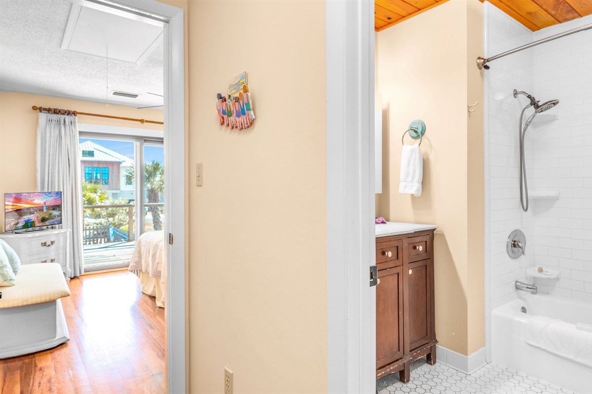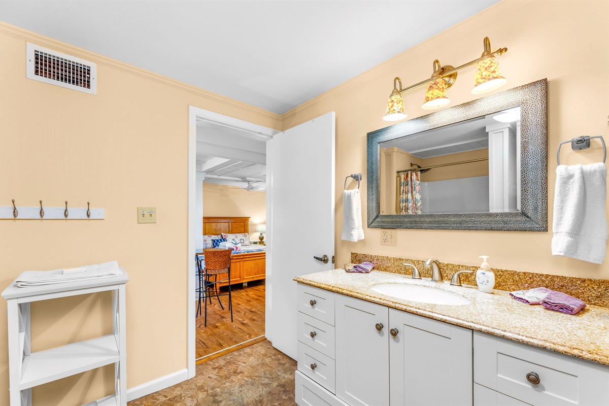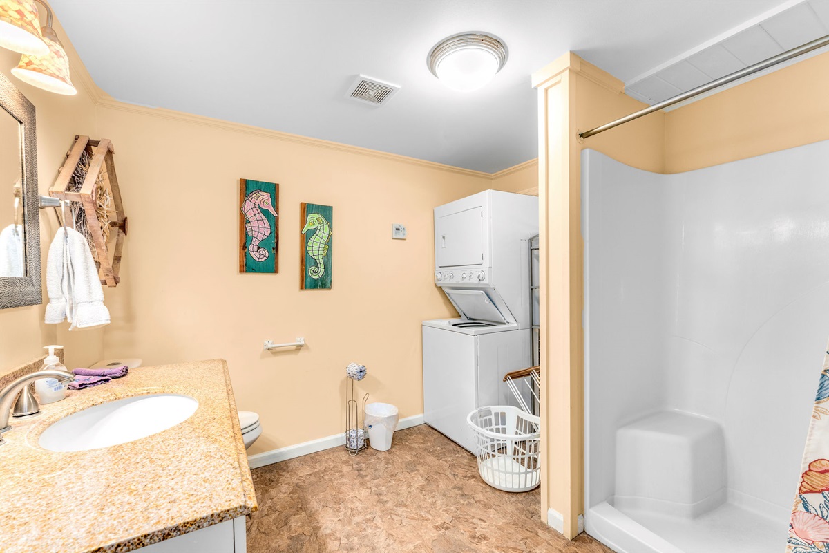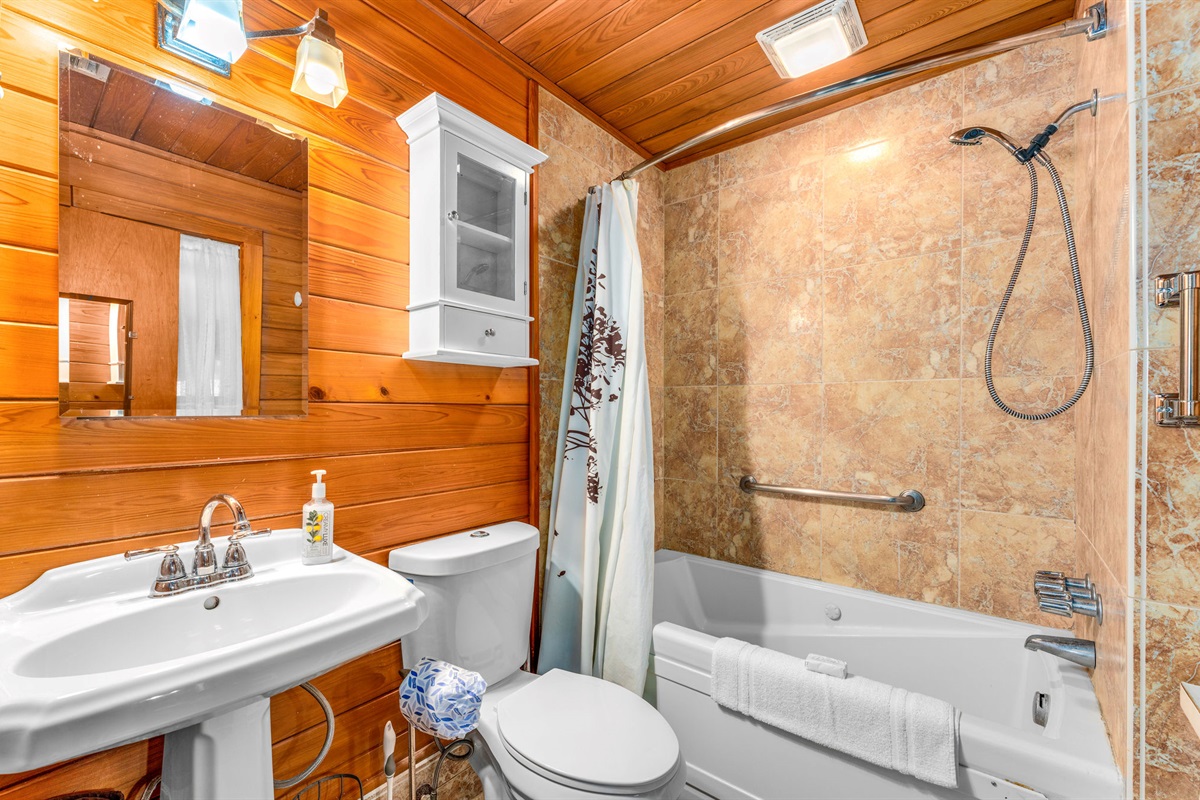 The ground level provides a family suite, with its own access and is not connected to the upstairs accommodations. The suite sleeps up to 8 with a bunk room of 4, a large open room with a king bed and a daybed with trundle, large tv, bathroom, washer and dryer, kitchenette with full size refrigerator, microwave, toaster oven and coffee maker.
