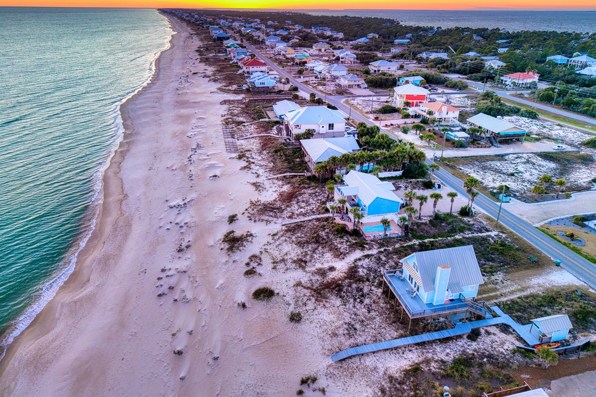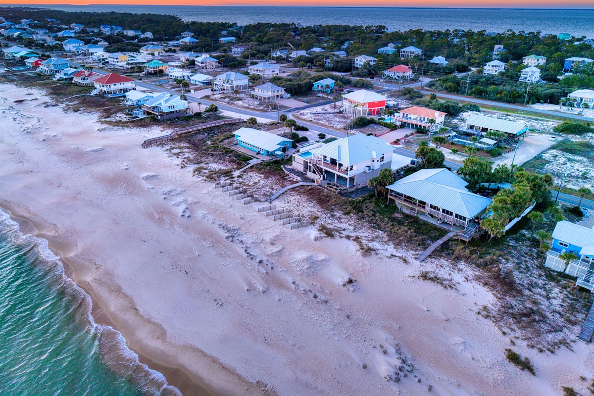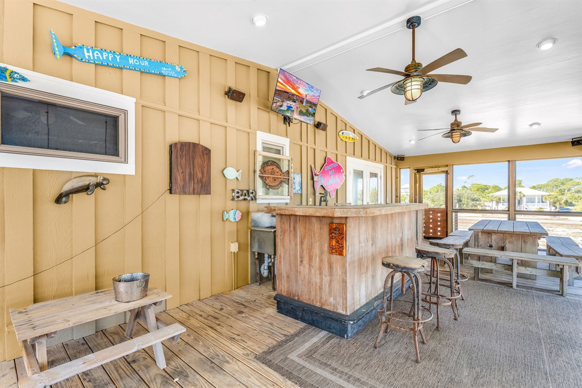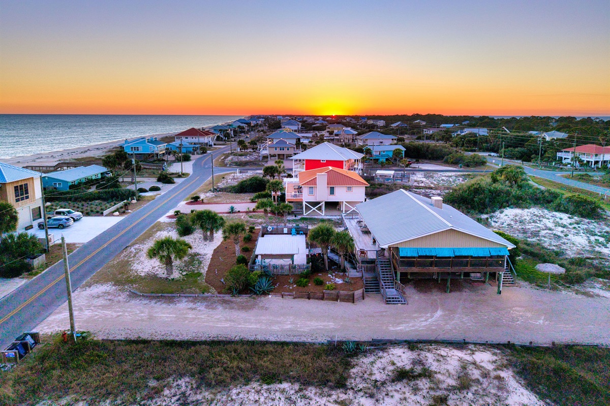 This house has unique features, such as Spanish tile throughout the living room, kitchen, dining room and wood floors in bedrooms; a large screened in porch that has proven to be a favorite hangout for families to have meals, watch the big game or big race, with a bar and tv, tables and chairs and ceiling fans; large front porch with plenty of seating that wraps around the house, connecting to the screened in porch, making it a favorite spot to seek sunrises and toast sunsets, overlooking the pool to supervise the kids and view the beautiful Gulf of Mexico. From the front porch, you can also see dolphins in their playing glory.