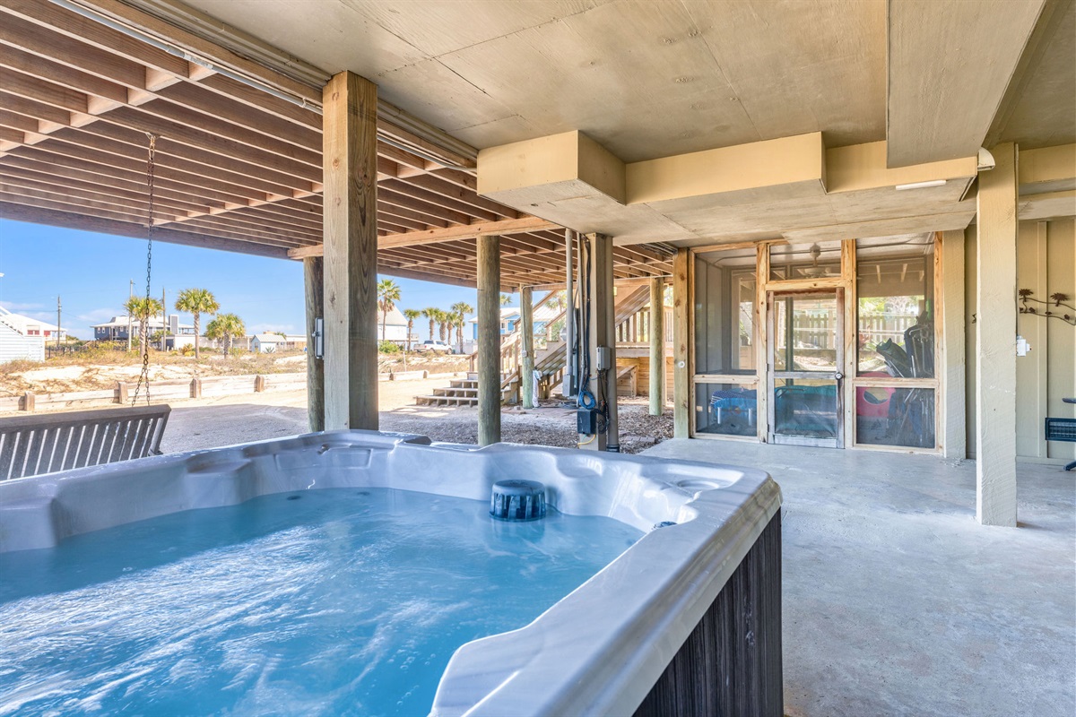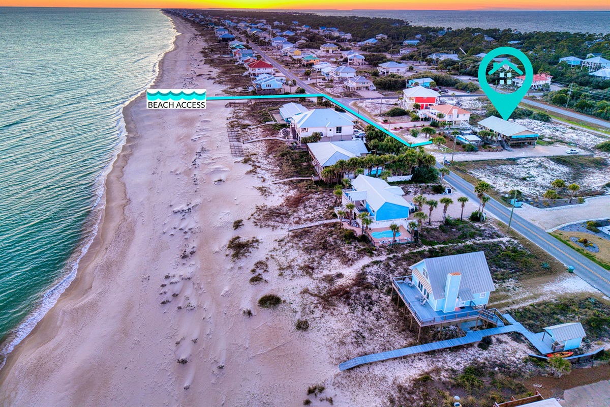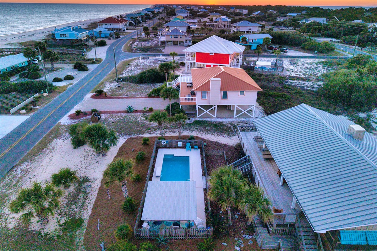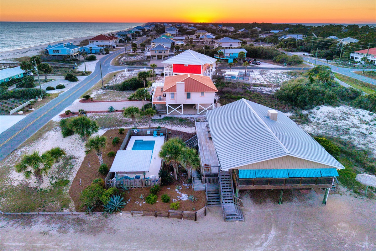 Your therapeutic retreat at Dune Therapy has everything you could want in an island vacation home! Just steps from the beach, private waterfall pool, , hot tub, corn hole, outside screened and covered bar with tv, and the list goes on!