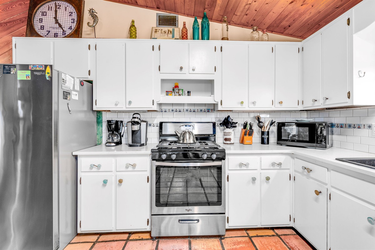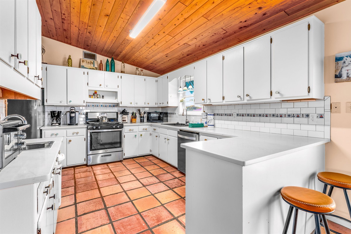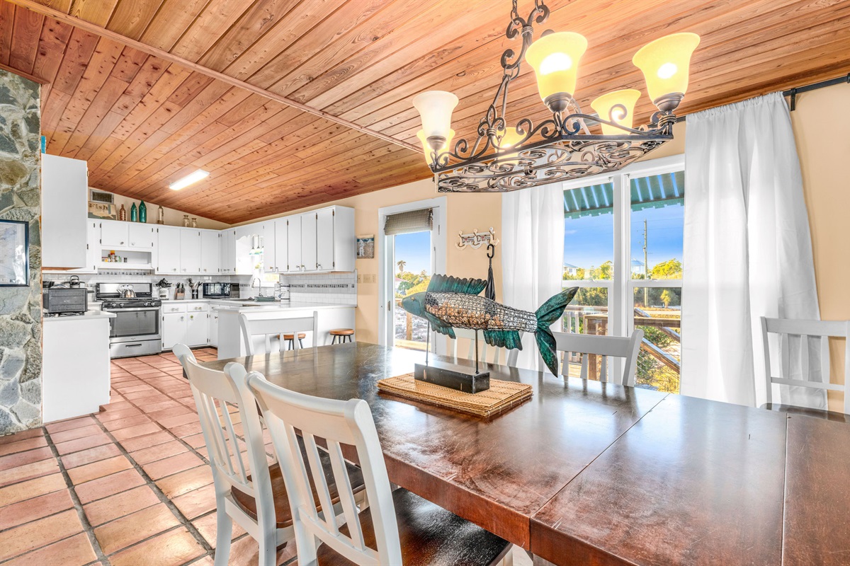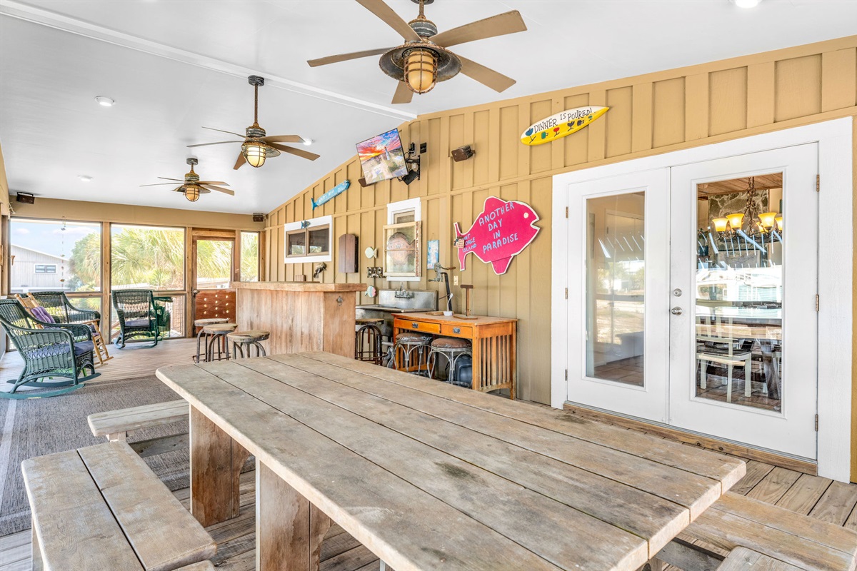 Large gas grill and a park style charcoal grill are provided under the house where you will find a fish cleaning sink and counter, as well as additional bench seating.