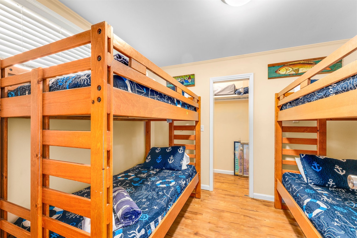 Bed sizes: 3 king, 1 queen, two bunk sets (4 twins), 1 daybed w trundle (2 twins)