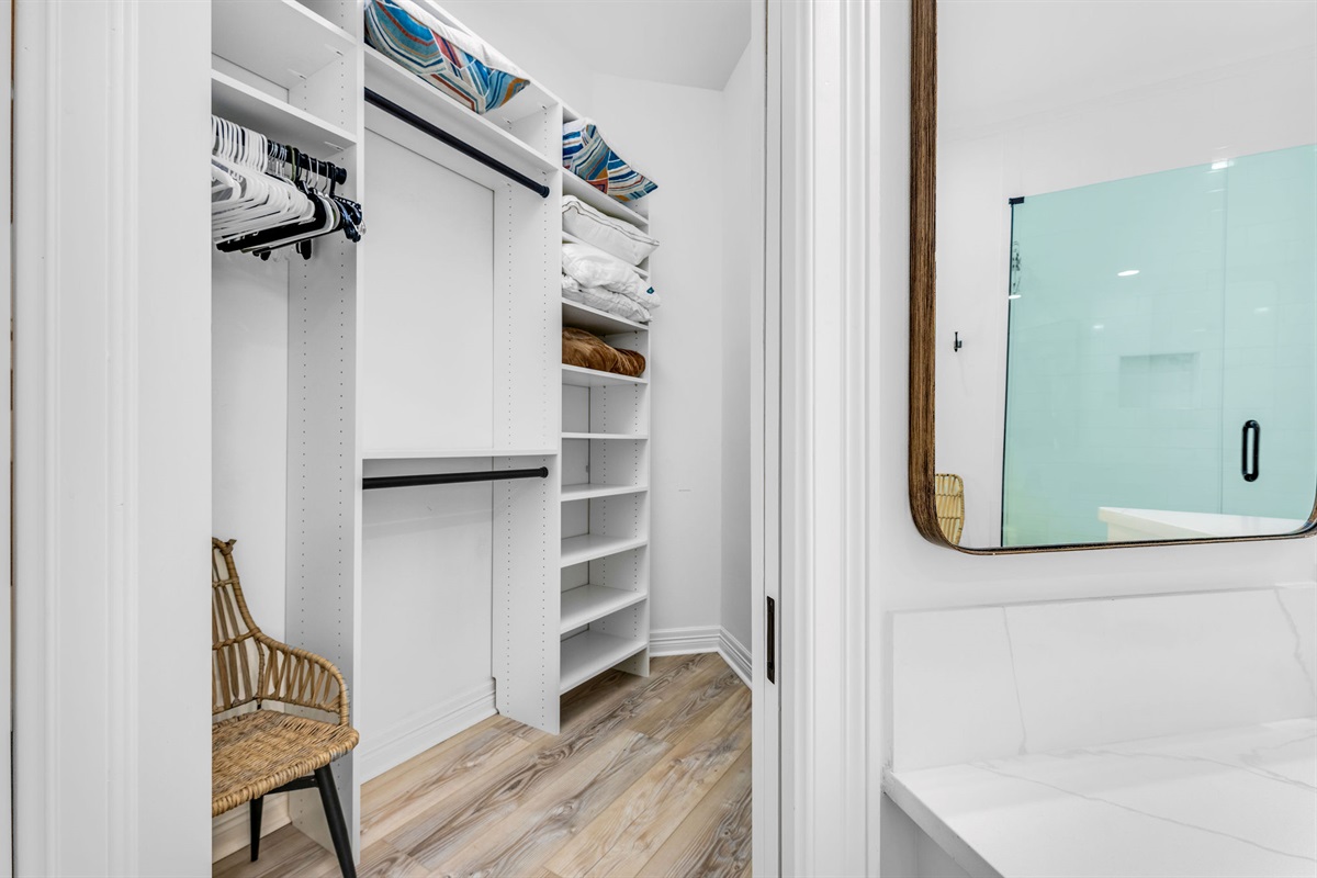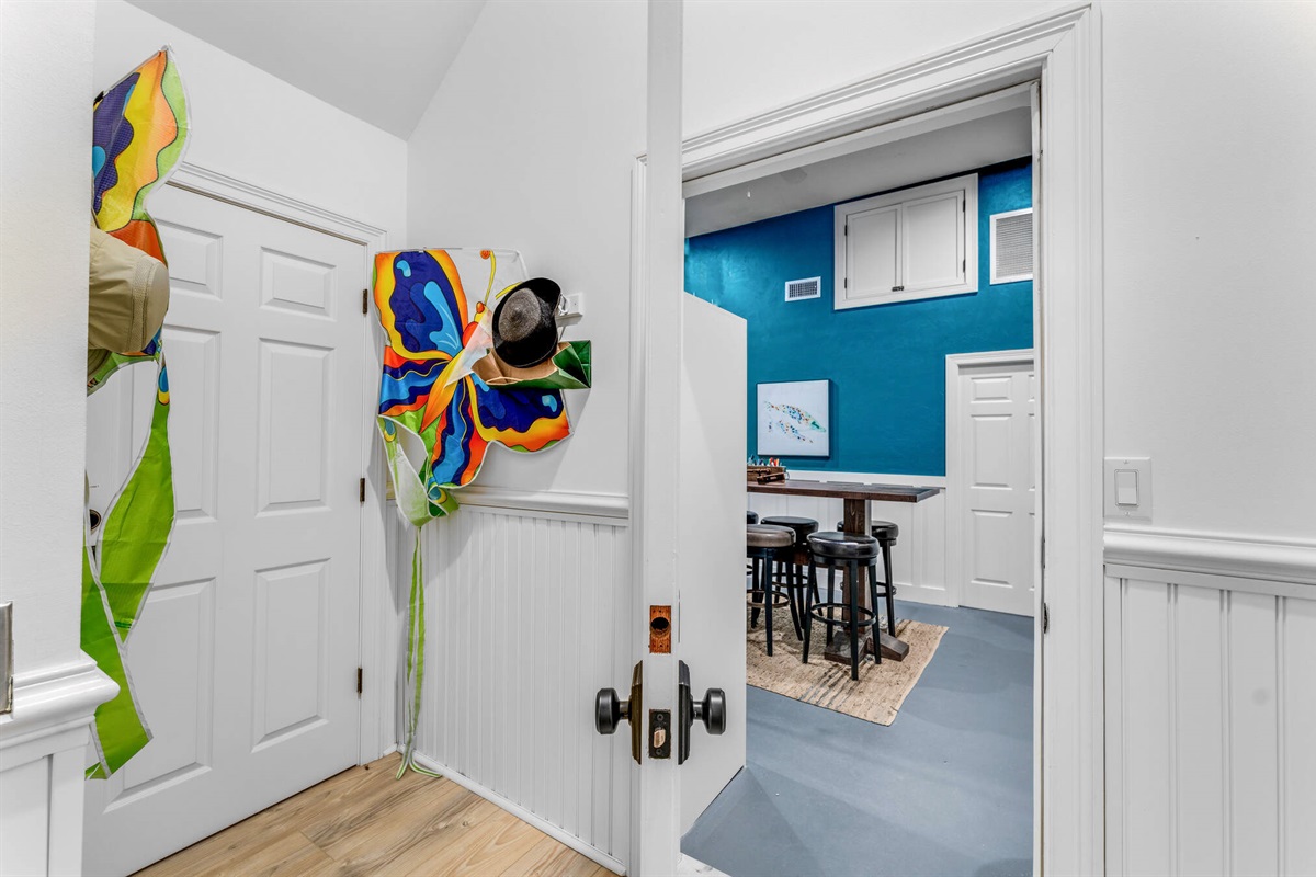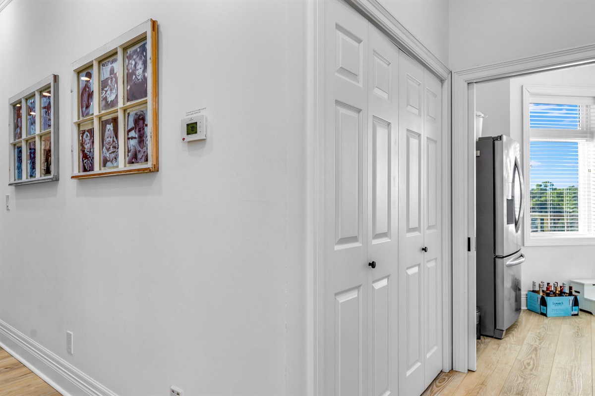 • Beach gear closet with chairs, umbrellas, and toys