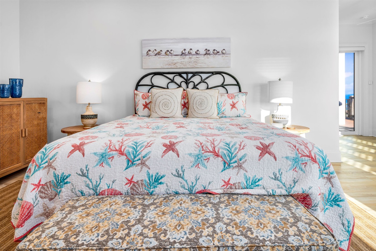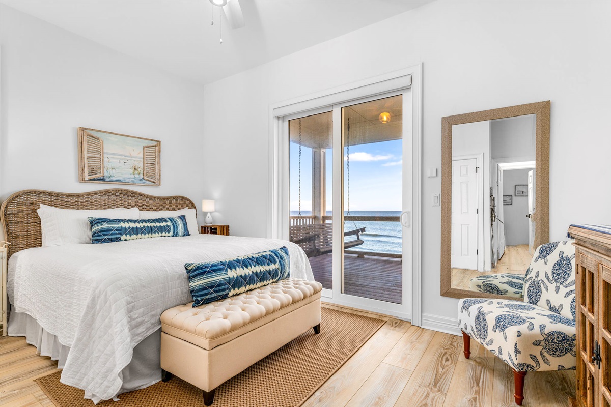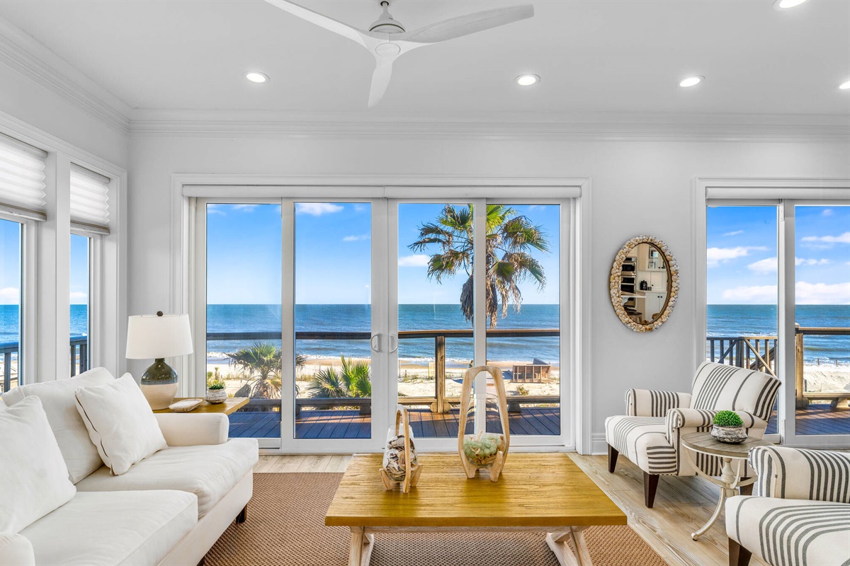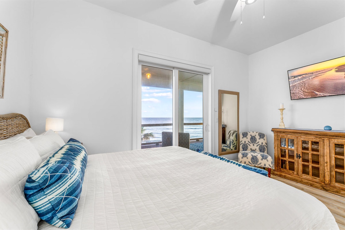 • Primary Suites: Multiple oceanfront primary bedrooms feature king beds, coastal artwork, designer linens, and en-suite bathrooms