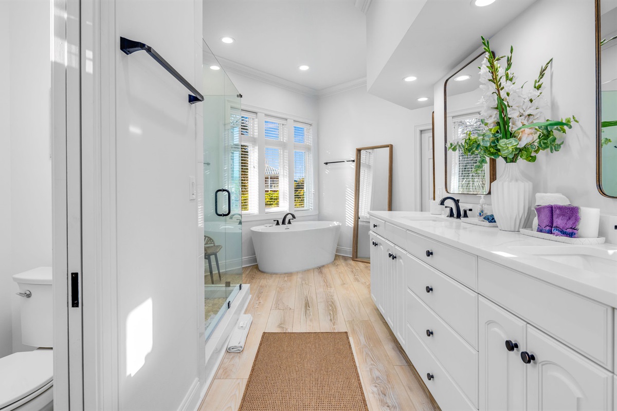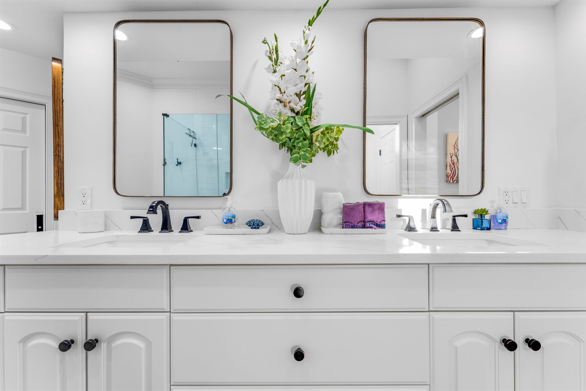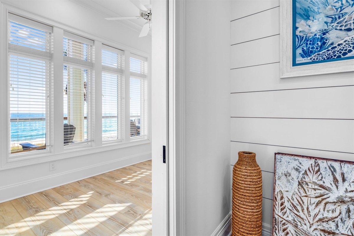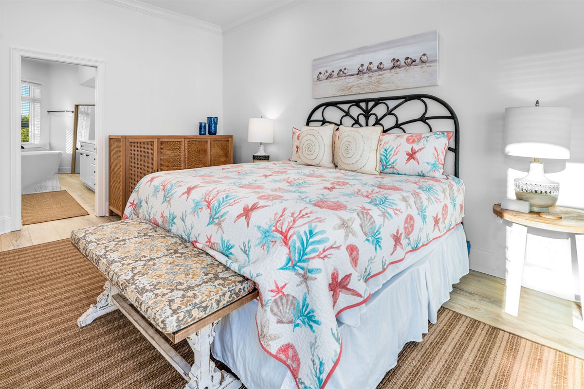 • Primary Suites: Multiple oceanfront primary bedrooms feature king beds, coastal artwork, designer linens, and en-suite bathrooms