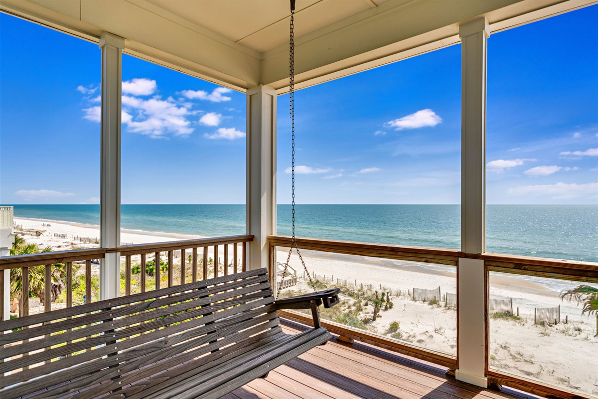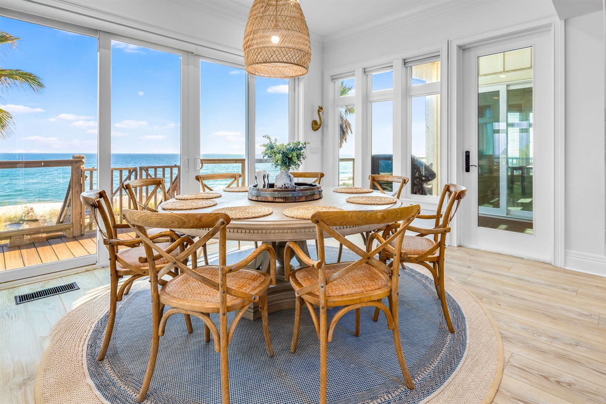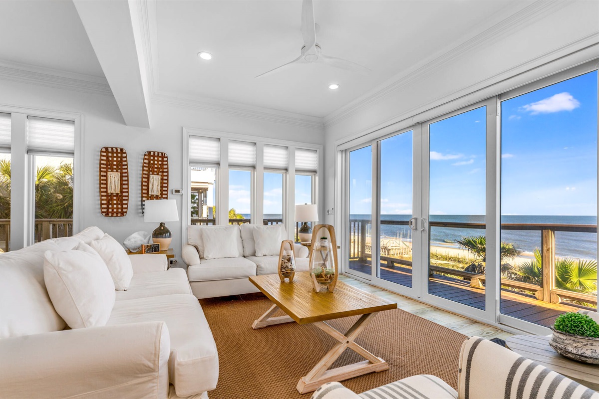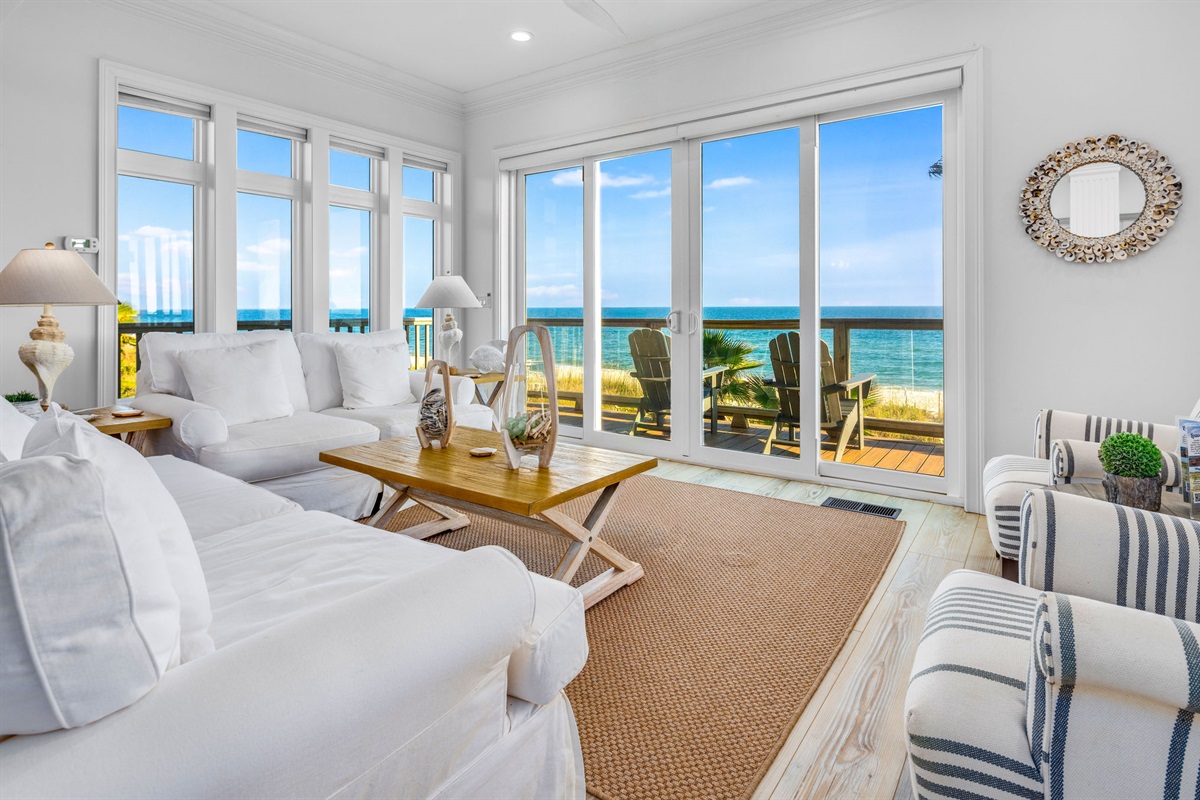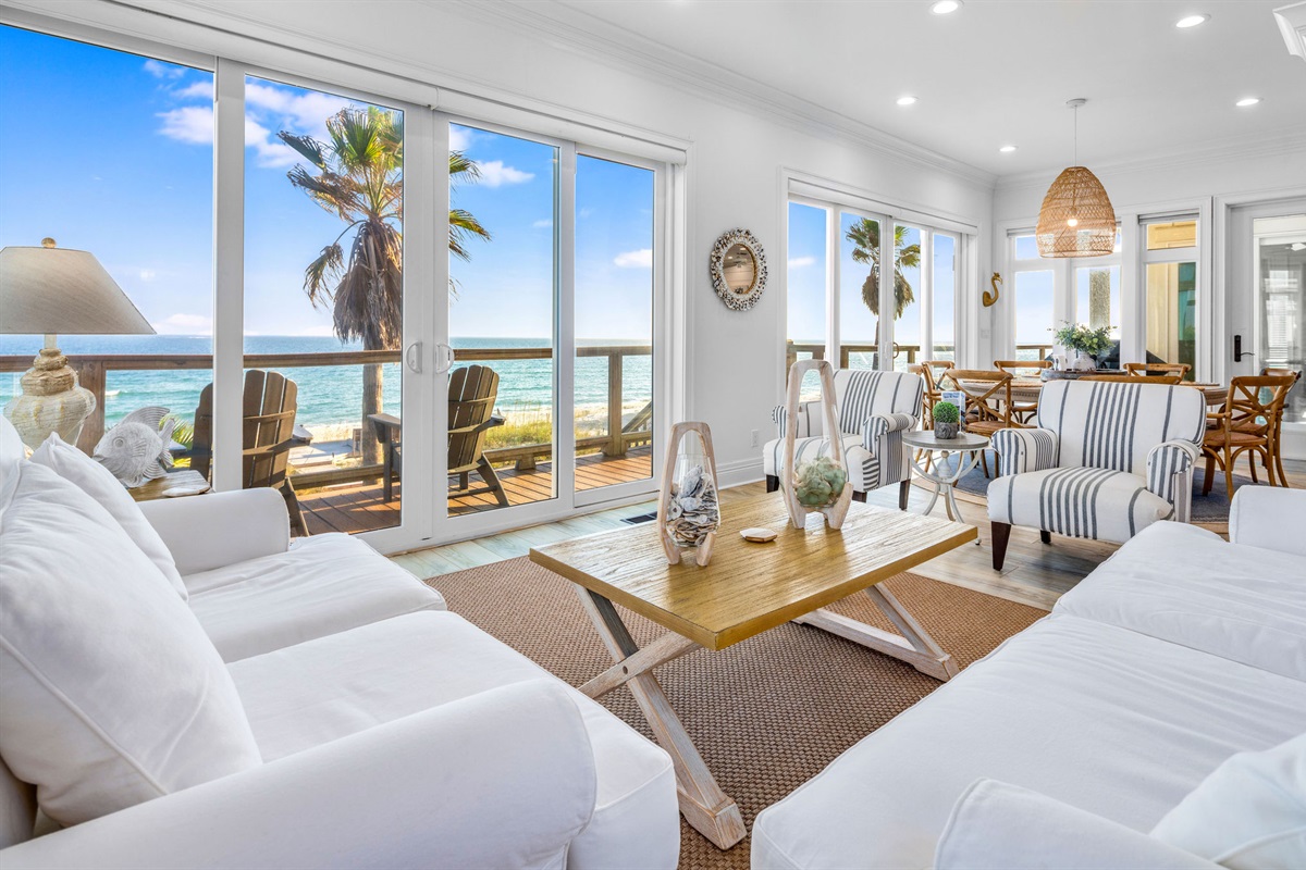 Experience the ultimate beachfront getaway in this stunning 6-bedroom, 6 and 2-1/2-bathroom coastal masterpiece. Perched directly on pristine white sand with panoramic ocean views, this professionally designed home offers the perfect blend of luxury, comfort, and endless entertainment for families and groups seeking an unforgettable beach vacation.