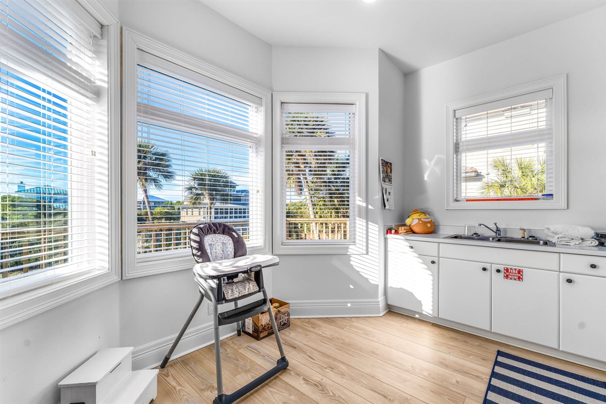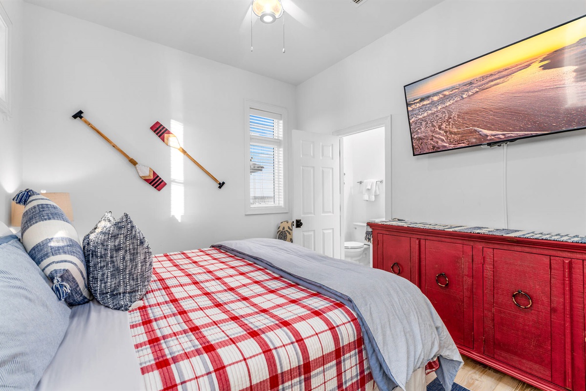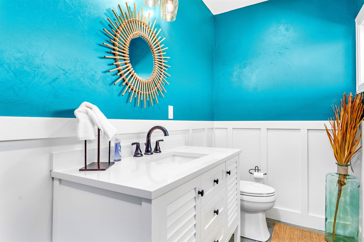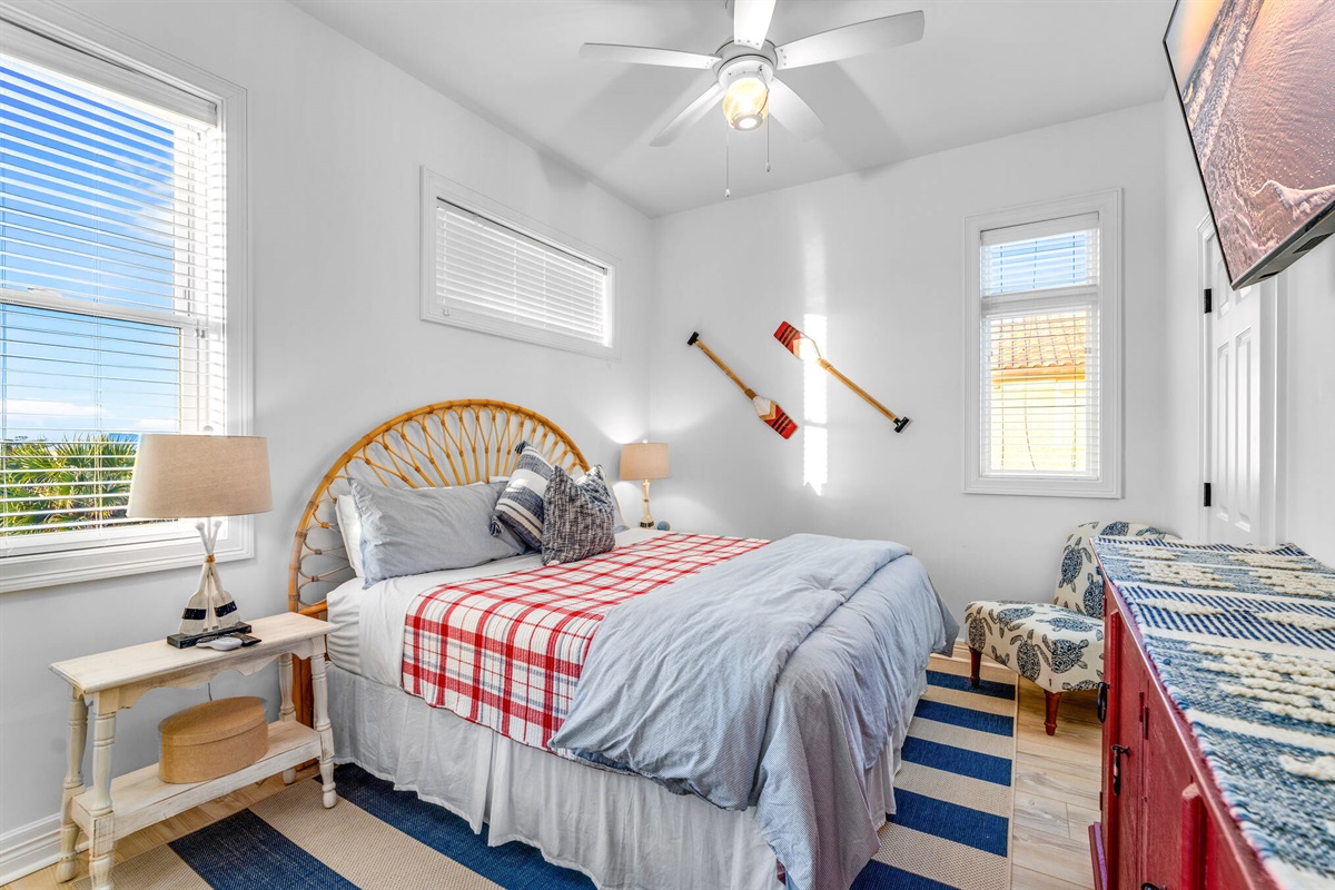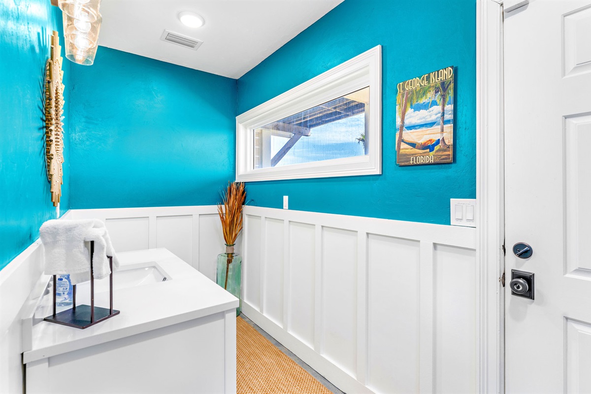• Bunk Room: Custom-built turquoise bunk beds sleep 4, perfect for kids and creating vacation memories