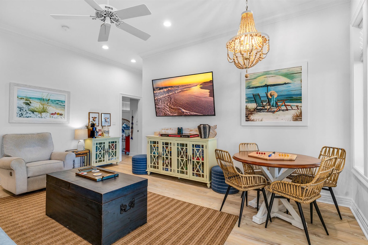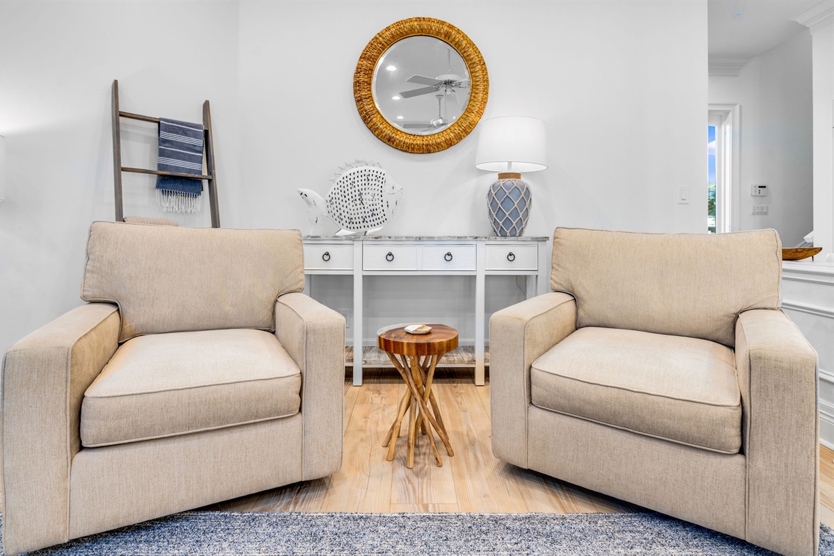 The home includes several distinct gathering areas - from the cozy den with ocean views to intimate sitting rooms, ensuring everyone in your group can find their perfect spot to relax, read, or enjoy quality time together.