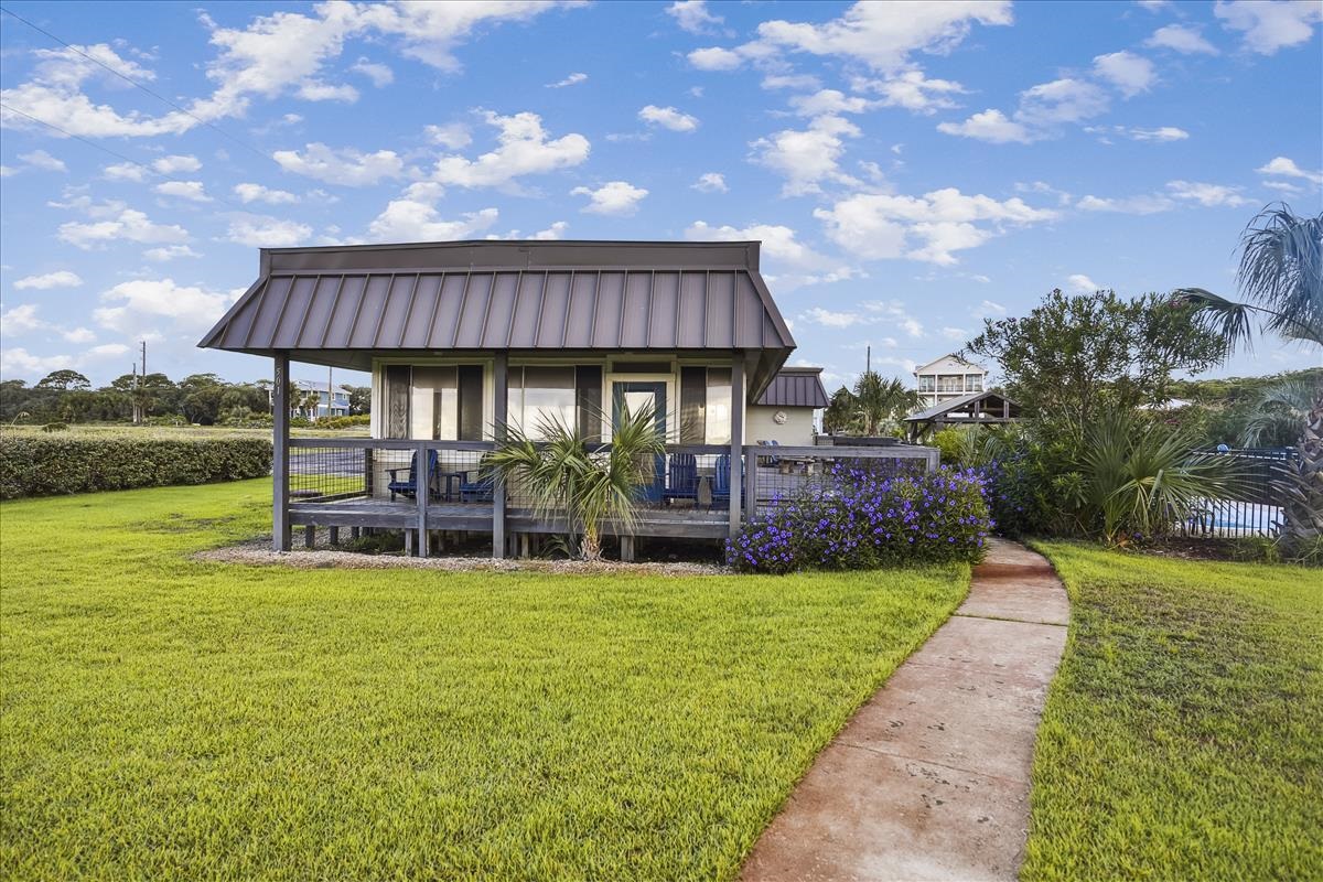 2 Bedrooms • 2 Bathrooms 2 Baths • Sleeps 1-6SANDPIPER COTTAGE is one of the few ground level homes left on St. George Island! This darling 2 bedroom, 2 bath ground level home is on the corner of 5th and East Gorrie, and directly across the street from the deeded beach access boardwalk. Sandpiper Cottage features lovely tile flooring throughout the home. The living area, dining area, and kitchen share an open floor plan. The living area has comfortable seating and a large flat screen TV. The dining table is a distressed wood table with bench seating. The kitchen is well equipped, featuring a breakfast bar, light and bright cabinets, granite counters, and stainless appliances. The first bedroom has a Queen bed with a flat screen TV. The second bedroom has a Queen bed with a flat screen TV and both bathrooms feature walk-in showers. Located off the living room is a low profile bunk beds (2 singlels) for additional sleeping. Going outside we discover a covered porch and a long sundeck overlooking the pool area, all set up with ample seating. The private pool has an extensive patio area surrounded by lush landscaping, features a splendid gazebo and an outdoor table to enjoy lunches as well as loungers to enjoy the sun. AMENITIES: Multiple TVs, DVD player, well-appointed kitchen with granite counters and stainless appliances, solid surface floors throughout, covered porch with fabulous views of the Gulf, screened porch, under house parking, private pool with extensive pool deck and lounge area, park-style charcoal grill, fish cleaning sink and station, beach access path directly across the street. PRIVATE POOL POOL HEATED FOR $300 WEEKLY DOG FRIENDLY (2 DOGS UNDER 35 LBS. EACH) A $75 Non-refundable Pet Fee is required per dog. NO SMOKING January and February Monthly rates